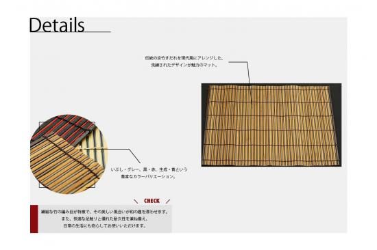 伝統の京竹すだれを現代風にアレンジした、洗練されたデザインが魅力のマットです。