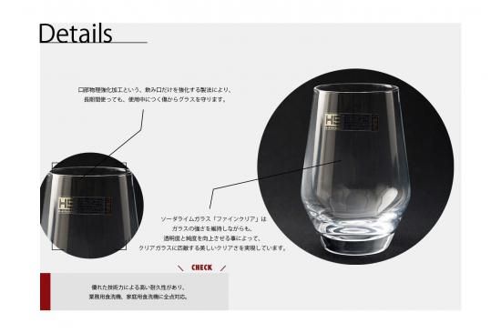 口部物理強化加工という、飲み口だけを強化する製法を使っているので、長期間使っても、使用中につく傷からグラスを守ります。