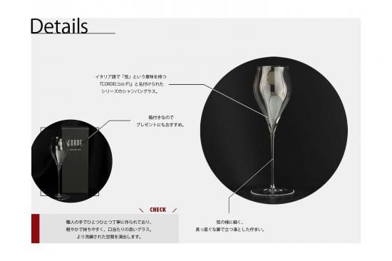 イタリア語で「弦」という意味を持つ『CORDE(コルデ)』と名付けられたシリーズのシャンパングラス。