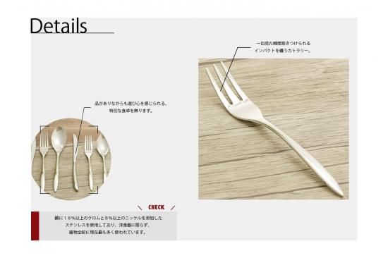 鋼に18%以上のクロムと8%以上のニッケルを添加したステンレスを使用しており、洋食器に限らず、器物全般に現在最も多く使われています。