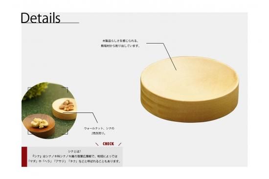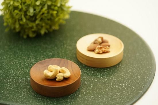 シナの他に色違いのウォールナットを用いた小鉢もあり、それぞれのカラー・質感を楽しめます。