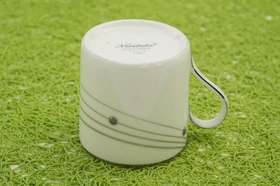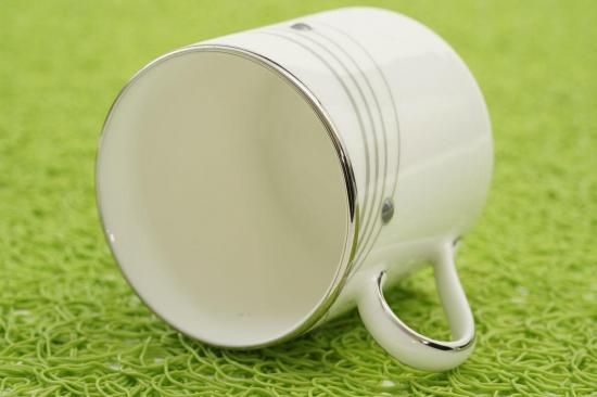 可憐な白い生地に控えめなシルバーがアクセントとなったデミタスカップ。