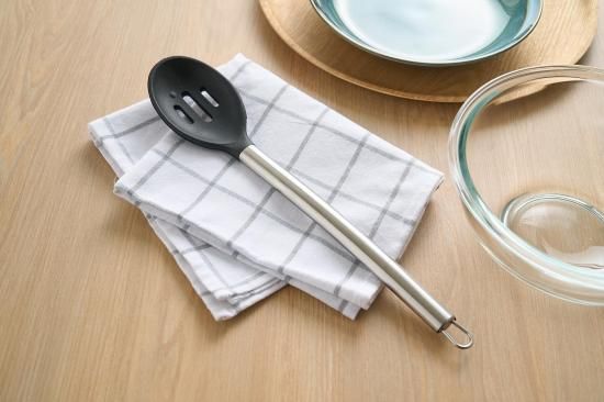 伝統的なキッチンツールのデザインを現代の家庭での使用に合わせて再構築した、魅力的な『テーブルクラフト シリコンスプーン CW401 穴あき』です。