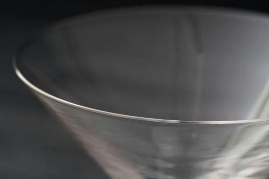 繊細なのに耐久性が高いのが特徴クリスタルガラスのような透明感のマティーニグラス。