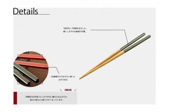 使いやすさを追求した人気素材、『孟宗竹』の特徴を生かした、細くしなやかな細身の竹箸。