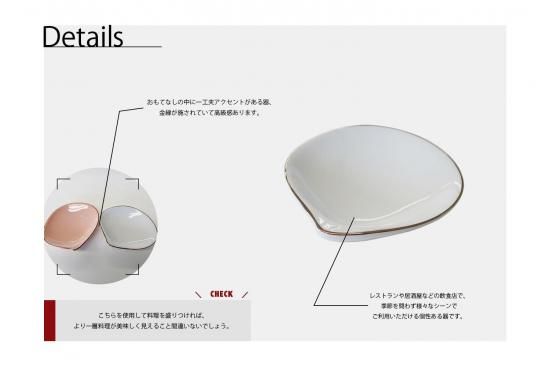 おもてなしの中に一工夫アクセントがある器、金縁が施されていて高級感あります。