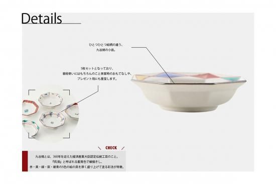 ひとつひとつ絵柄の違う、九谷焼の小皿。
