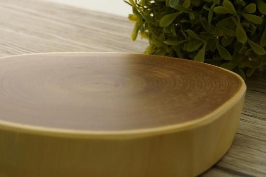 丸太のナチュラルな風合いをそのままに、硬く、なめらかな木肌や心材と辺材で異なる色のコントラストが楽しめる『槐(えんじゅ)』の太皿です。