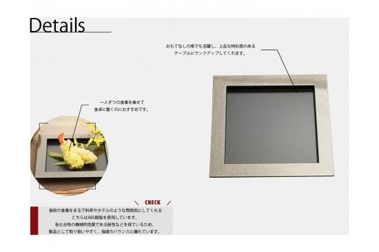 普段の食事をまるで料亭やホテルのような雰囲気にしてくれるこちらはABS樹脂を使用しています。