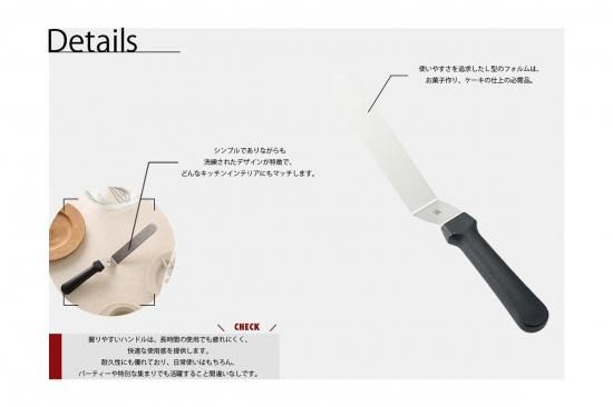 使いやすさを追求したL型のフォルムは、お菓子作り、ケーキの仕上の必需品。