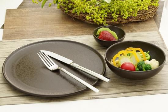 天然石の風合いとブラウンの『NIVO MOKKA』シリーズのボウルは、お料理を引き立て、彩り鮮やかな食材とのコントラストを愉しむのに最適です。