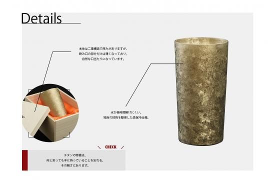 ※こちらの商品はチタン製 中空・高保冷2重構造タンブラー 窯創り プレミアム ゴールドのみの販売となります。