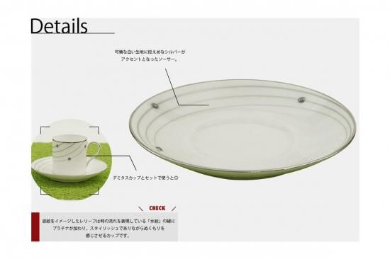 可憐な白い生地に控えめなシルバーがアクセントとなったソーサー。