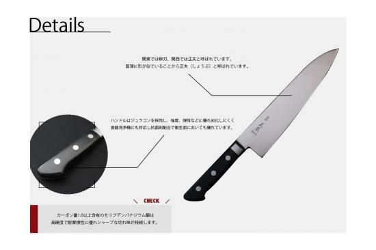 ※こちらの商品はハイパーモリブデン鋼 ツバ付牛刀(両刃)24cmのみの販売となります。