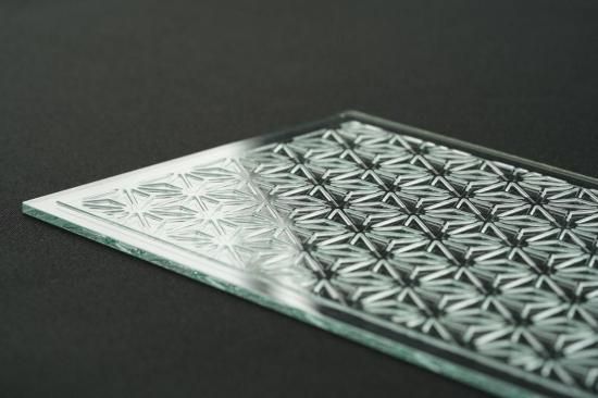 ガラスの蓋全面に麻の葉柄をエッチング加工を施し、料理の気配を彩り演出する料理箱です。
