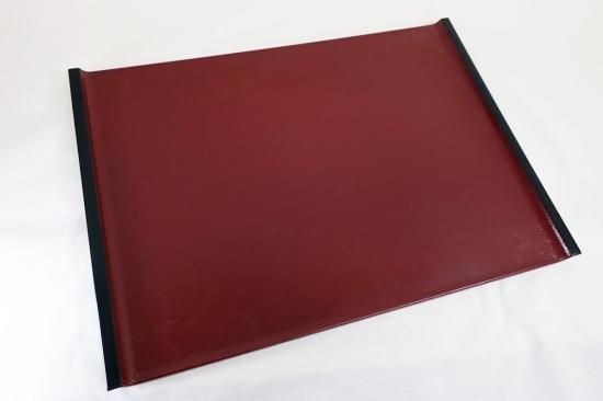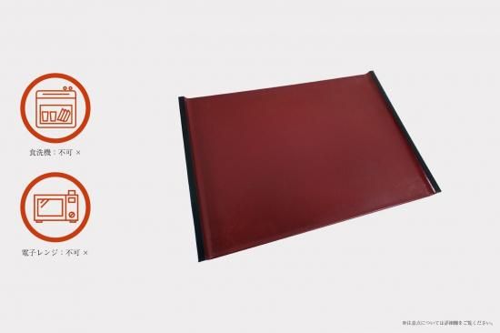 目にも鮮やかな朱色と、その色味を引き締めるように添えられた黒が上品さを漂わせる、お盆。
