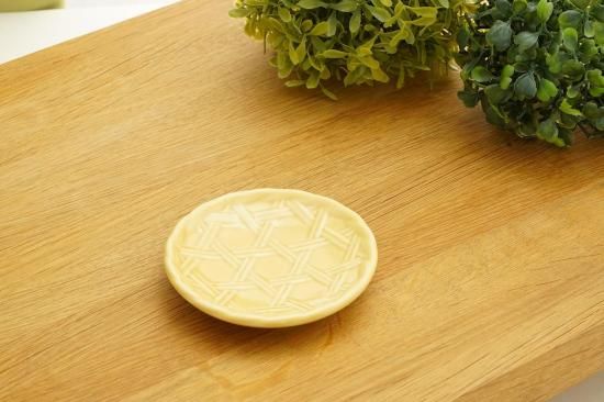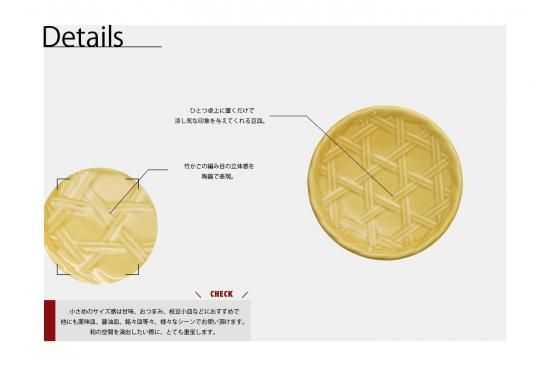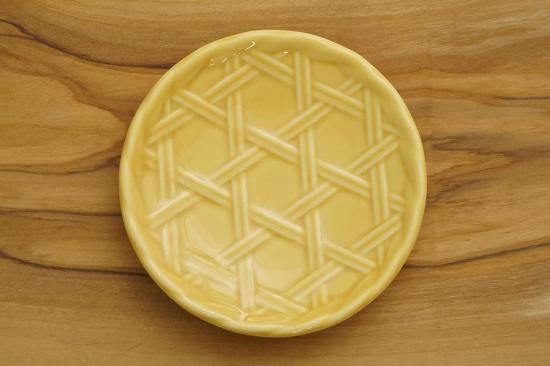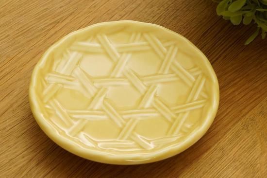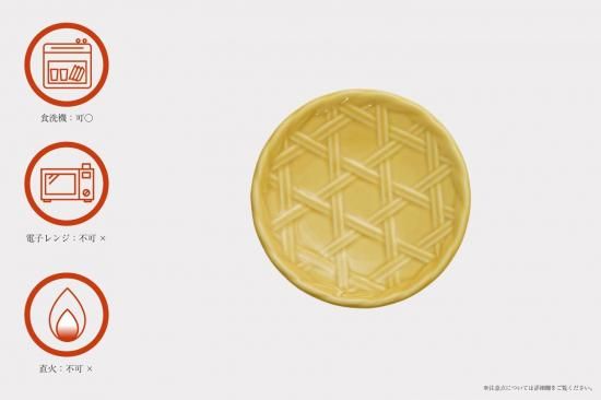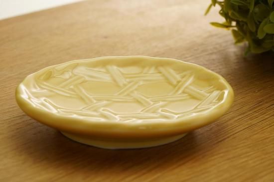 竹かごの編み目の立体感を陶器で表現した小皿。