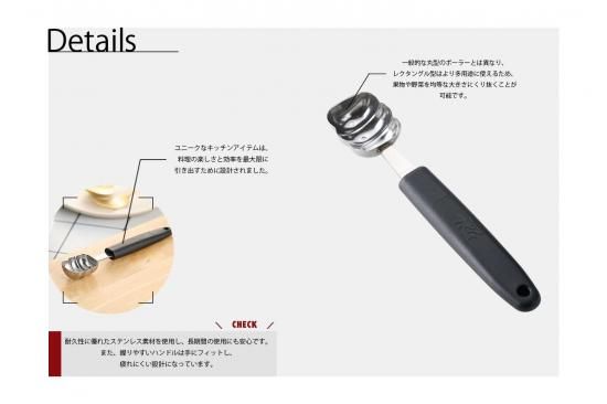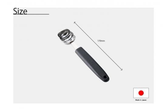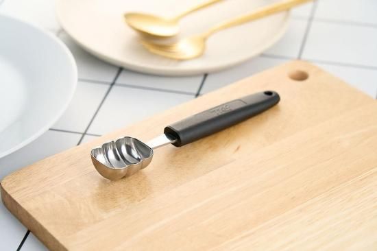 一般的な丸型のボーラーとは異なり、レクタングル型はより多用途に使えるため、果物や野菜を均等な大きさにくり抜くことが可能です。