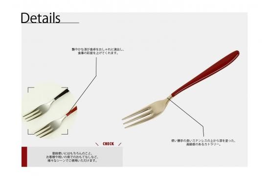 使い勝手の良いステンレスの上から漆を塗った、高級感のあるカトラリー。