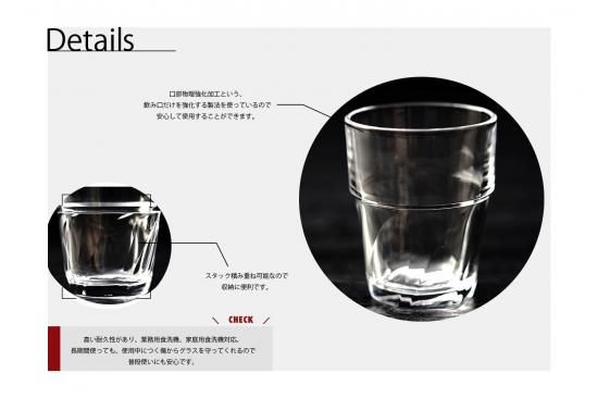 口部物理強化加工という、飲み口だけを強化する製法を使っているので、長期間使っても、使用中につく傷からグラスを守ります。