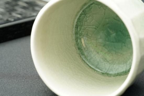 うっすらときれいなグリーンと削ぎを入れた線が白く出ており、非常に綺麗なそば猪口となっています。
