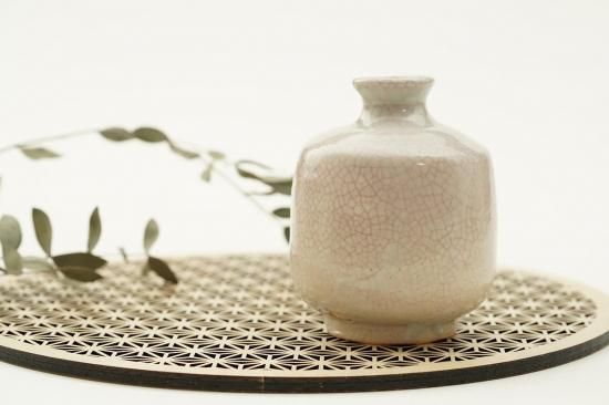 つるりとした丸みを帯びたこちらの酒器は、釉薬の表面にできたひびである「貫入」が特徴的。