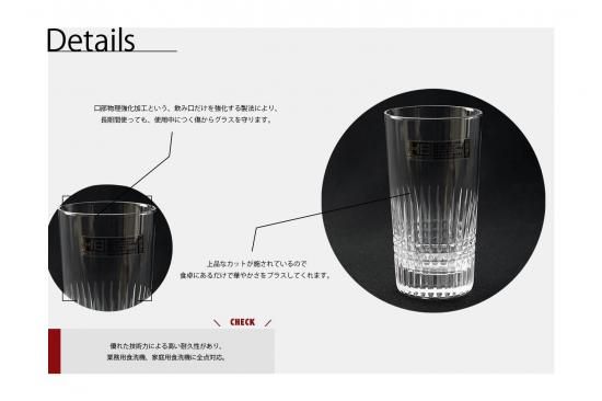 口部物理強化加工という、飲み口だけを強化する製法を使っているので、長期間使っても、使用中につく傷からグラスを守ります。