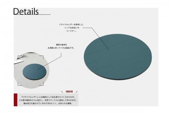 リサイクルレザーを使用した、シックな色合いのコースターです。