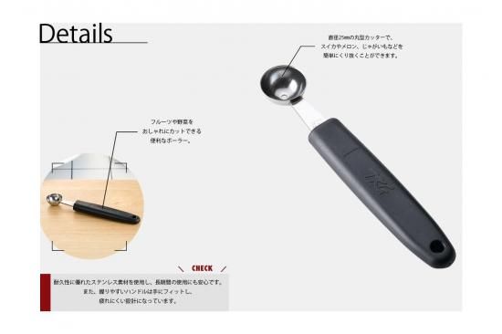 直径25?oの丸型カッターで、スイカやメロン、じゃがいもなどを簡単にくり抜くことができます。