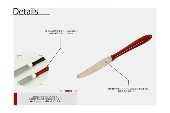 使い勝手の良いステンレスの上から漆を塗った、高級感のあるカトラリー。