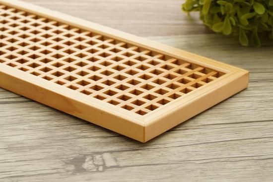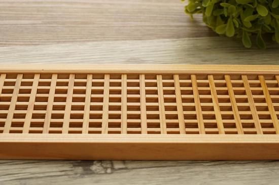 美しい秋田杉の赤みを使用した、職人の技が生きるこちらの格子の前菜皿は、格調高いおもてなし時の使用におすすめです。