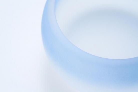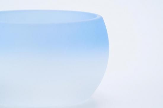 ぽってりとした厚みと、ほわっとしたグラデーションが可愛らしい印象を与える、すりガラスの小鉢です。