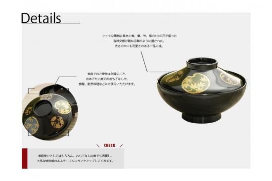 家庭でのご使用は勿論のこと、おめでたい席でのおもてなしや、旅館、割烹料理などにご使用いただけます。