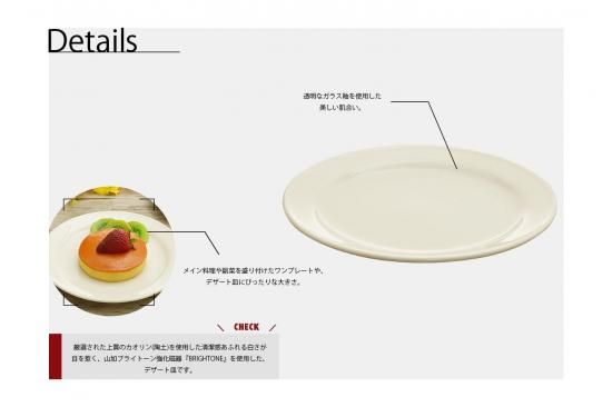 厳選された上質のカオリン(陶土)を使用した清潔感あふれる白さが目を惹く、山加ブライトーン強化磁器『BRIGHTONE』を使用した、デザート皿です。