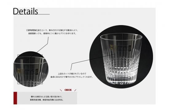 口部物理強化加工という、飲み口だけを強化する製法を使っているので、長期間使っても、使用中につく傷からグラスを守ります。