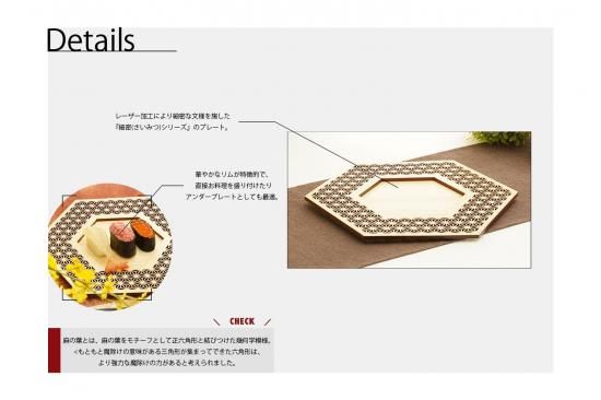 レーザー加工により細密な文様を施した『細密(さいみつ)シリーズ』のプレート。