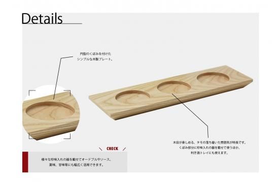 また、様々な珍味入れの器を載せてオードブルやソース、薬味、甘味等にも幅広く活用できます。