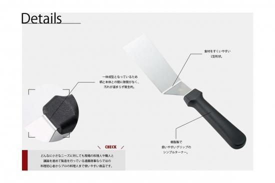 食材をすくいやすいL型形状で、調理作業をサポートしてくれる造りに仕上がっています。