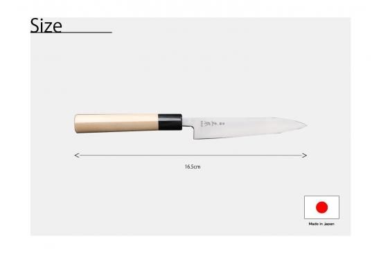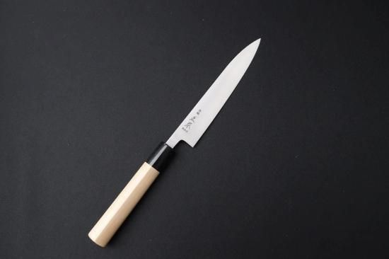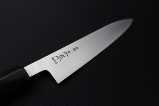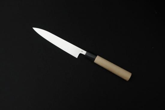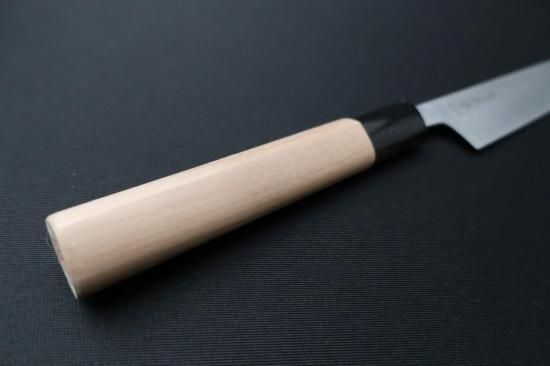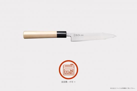 サビにくいステンレス系スウェーデン鋼を使用し、和食の調理師の手になじみ易いよう水牛柄をすげてあります。