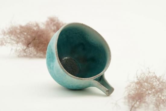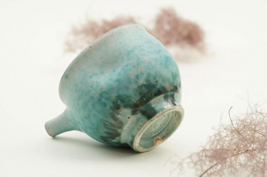 つや消しの肌にとけ込むように流れるペルシャンブルーが涼しげな器です。