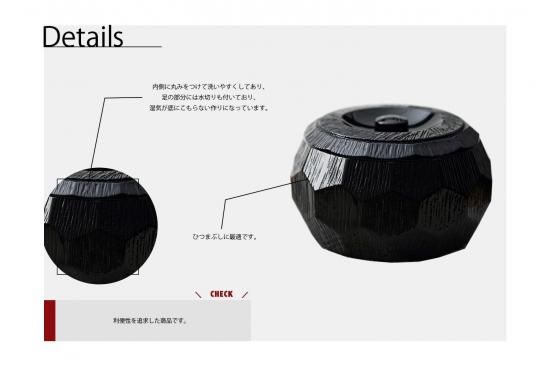 内側に丸みをつけて洗いやすくしてあり、足の部分には水切りも付いており、湿気が底にこもらない作りになっています。