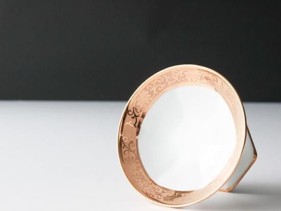 透き通るような白磁に施された金彫の唐草模様が美しい、盃。