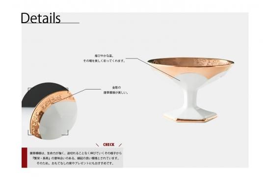 ※こちらの商品は4寸六角花彫高台白釉渕金彫唐草のみの販売となります。