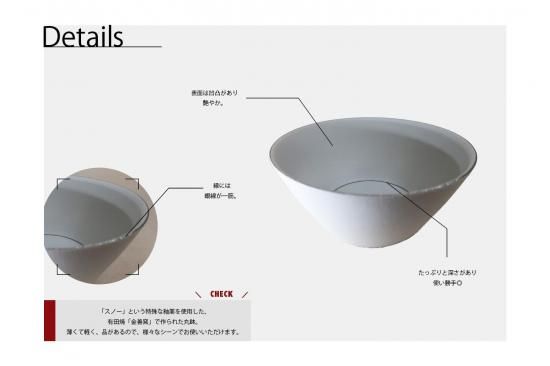 「スノー」という特殊な釉薬を使用した、有田焼「金善窯」で作られた丸鉢。