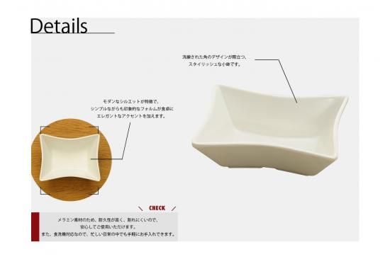 ※こちらの商品はメラミン97ツノ長角小鉢 白グロスのみの販売となります。