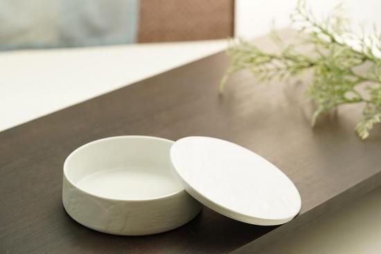 三徳六味という禅文化を基本理念に、和と洋とが交差する世界観を形にした器でおなじみの、藤正の蓋付きのお皿です。