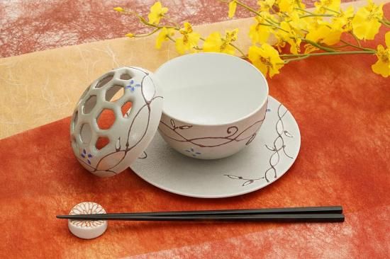 蓋物は茶道等の場で用いられる『香炉』をモチーフに作られており、そのユニークかつ優雅な佇まいが食卓をいつもと違う雰囲気に演出してくれます。