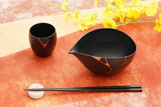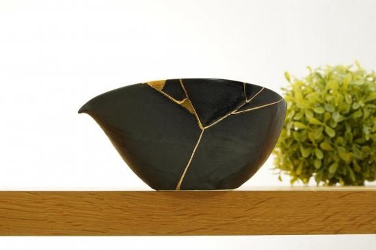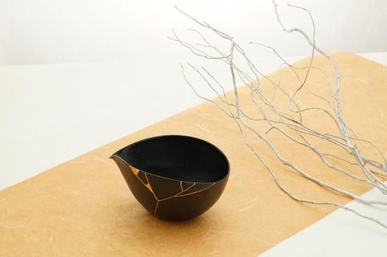 艶やかな黒色と金継ぎの繊細な美しさが魅力的な片口鉢。