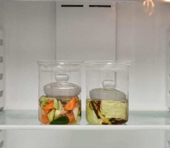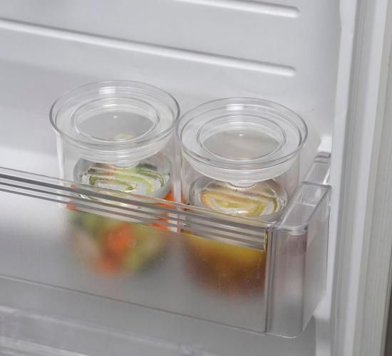 スリムな形状で、冷蔵庫のドアポケットや棚に置いて保存ができます。