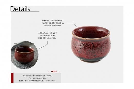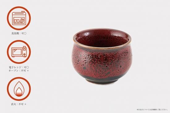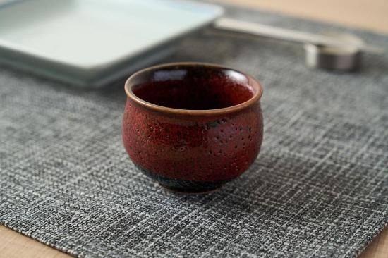 焼き締めのような力強い質感と、インパクトのある深い朱色が美しい『朱印』シリーズのお猪口。